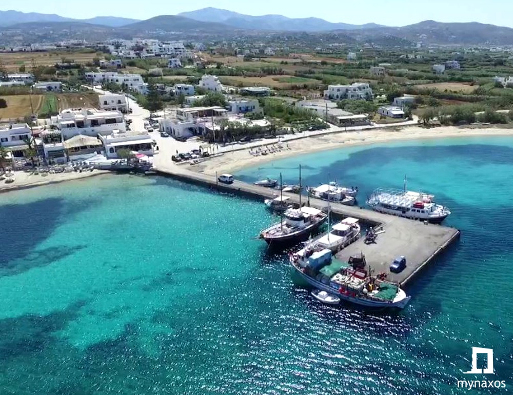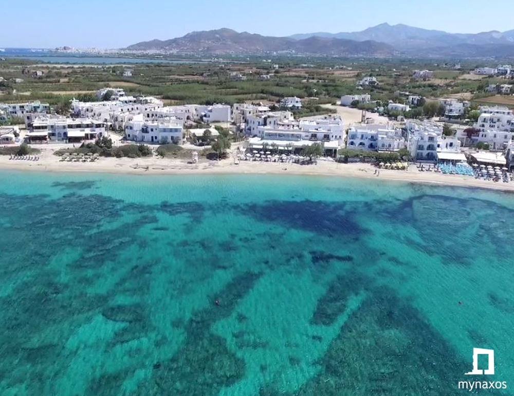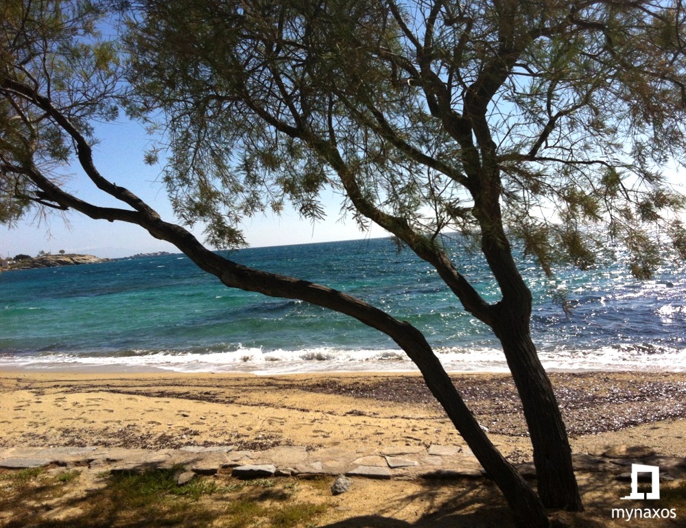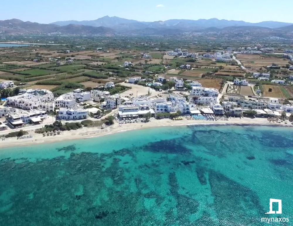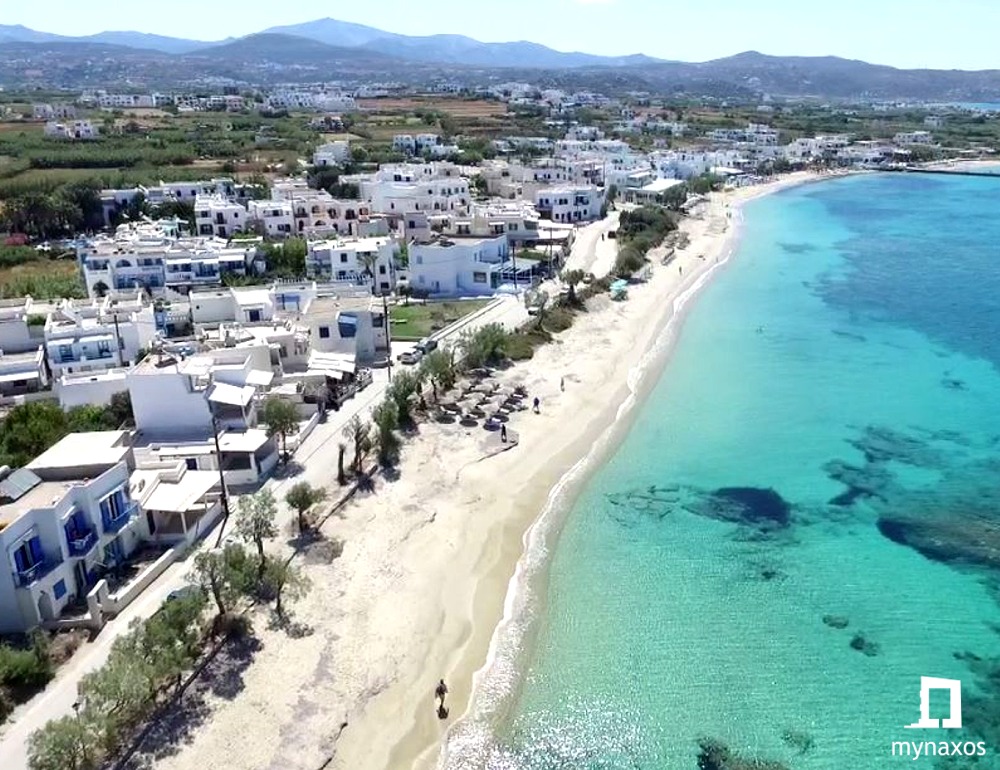 Απέχει περίπου 6,7 χλμ από τη Χώρα της Νάξου. Αποτελεί τη φυσική συνέχεια της παραλίας του Αγίου Προκοπίου.