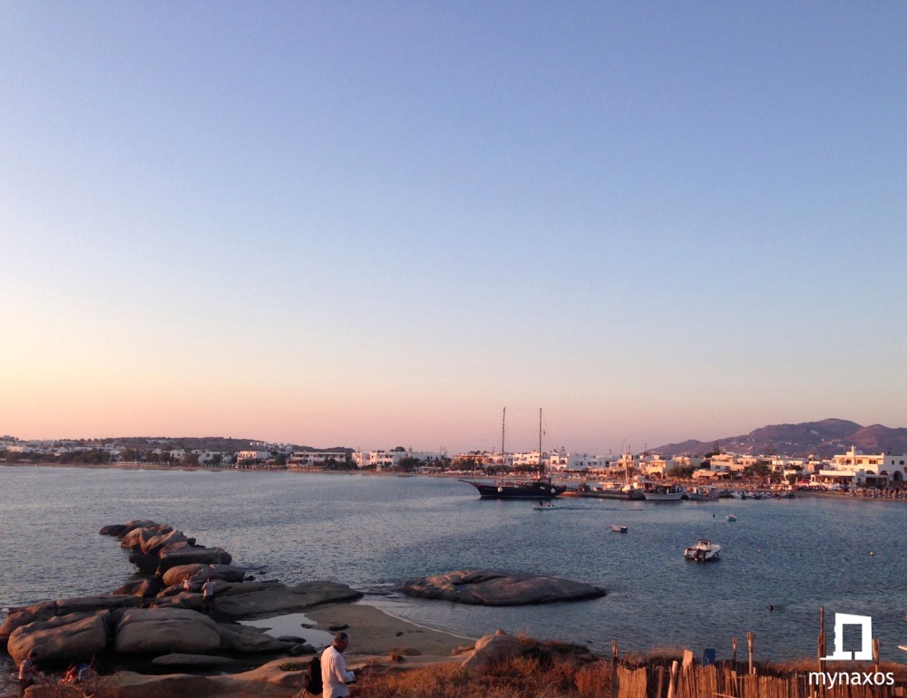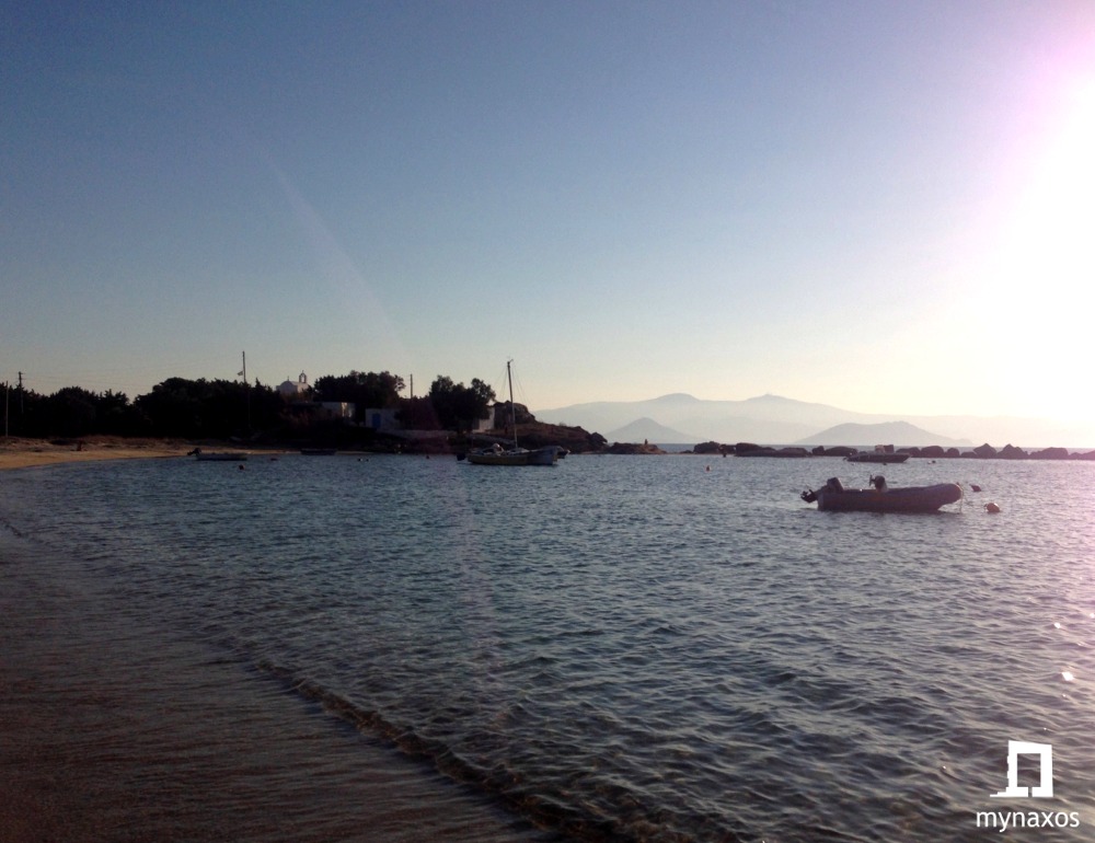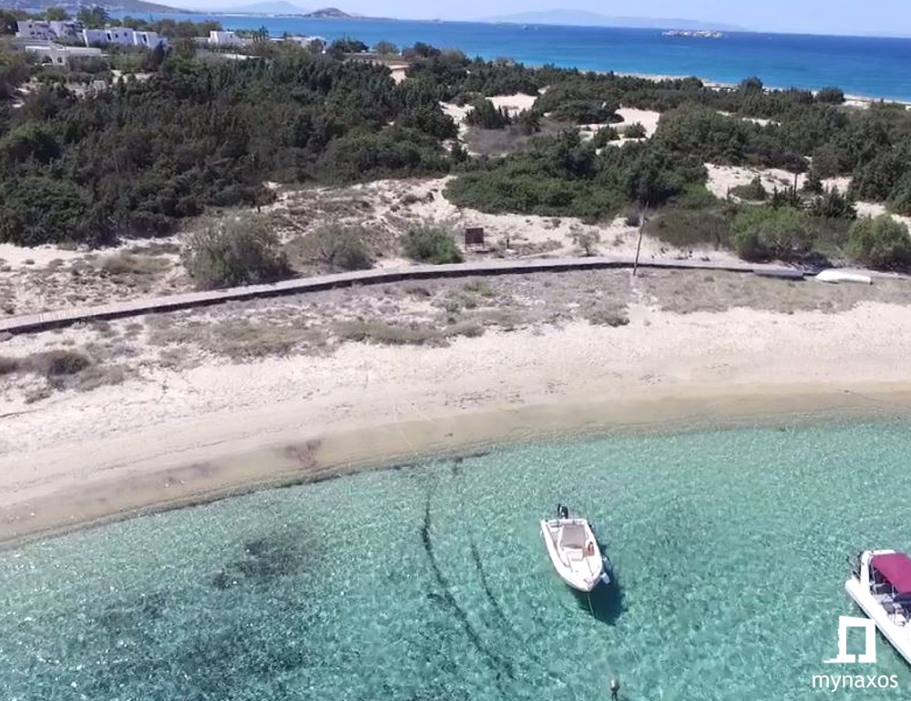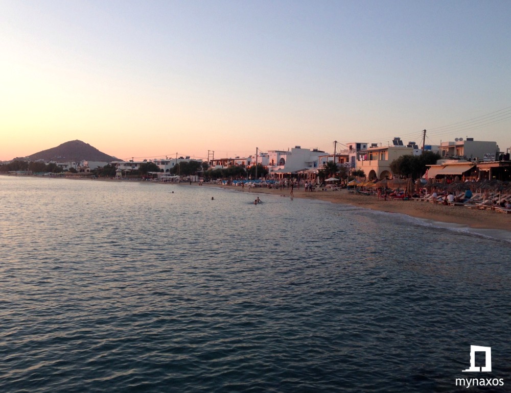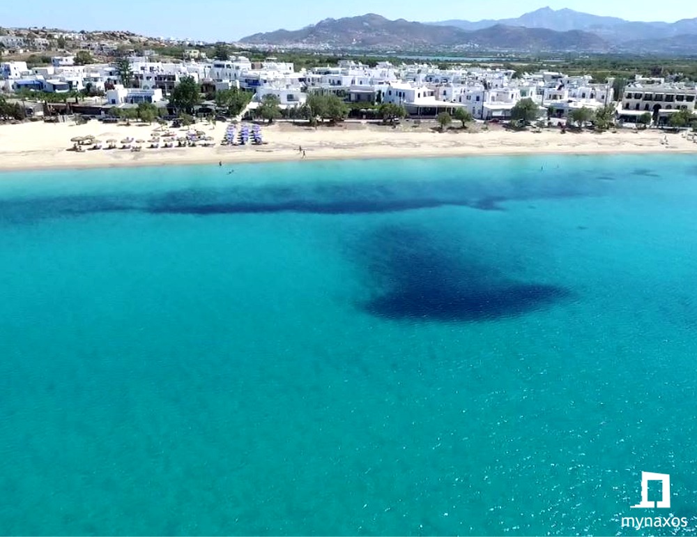 Απέχει περίπου 6,7 χλμ από τη Χώρα της Νάξου. Αποτελεί τη φυσική συνέχεια της παραλίας του Αγίου Προκοπίου.