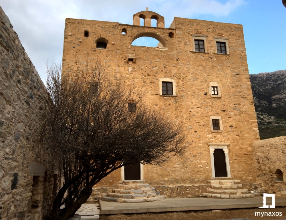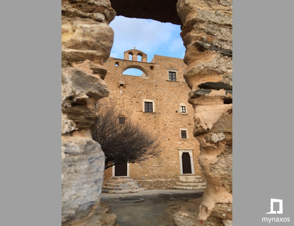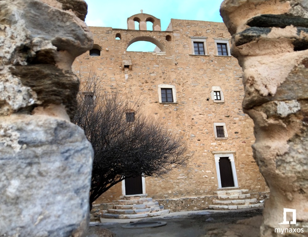 The Timios Stavros Monastery or Bazaios’ Tower is located 12 km south of Chora, in Kampos of Agiasos.